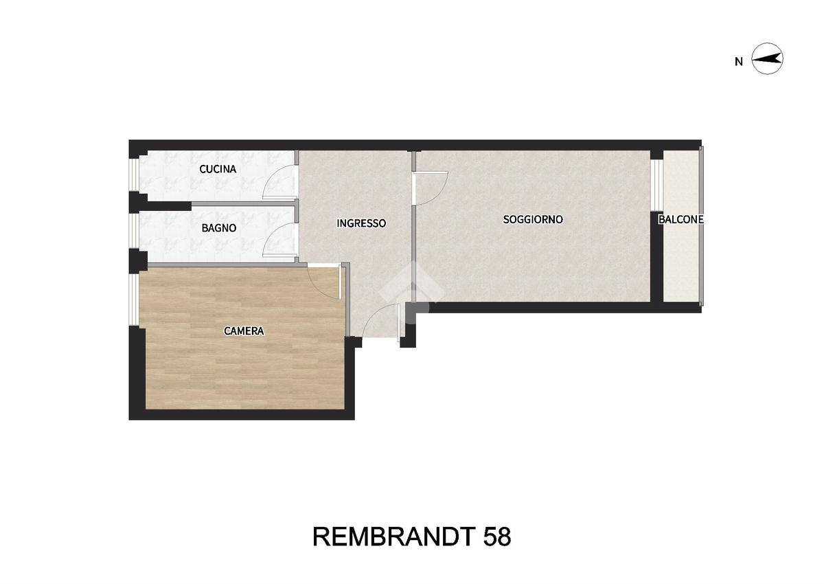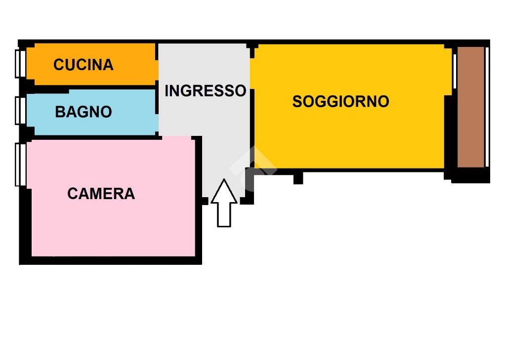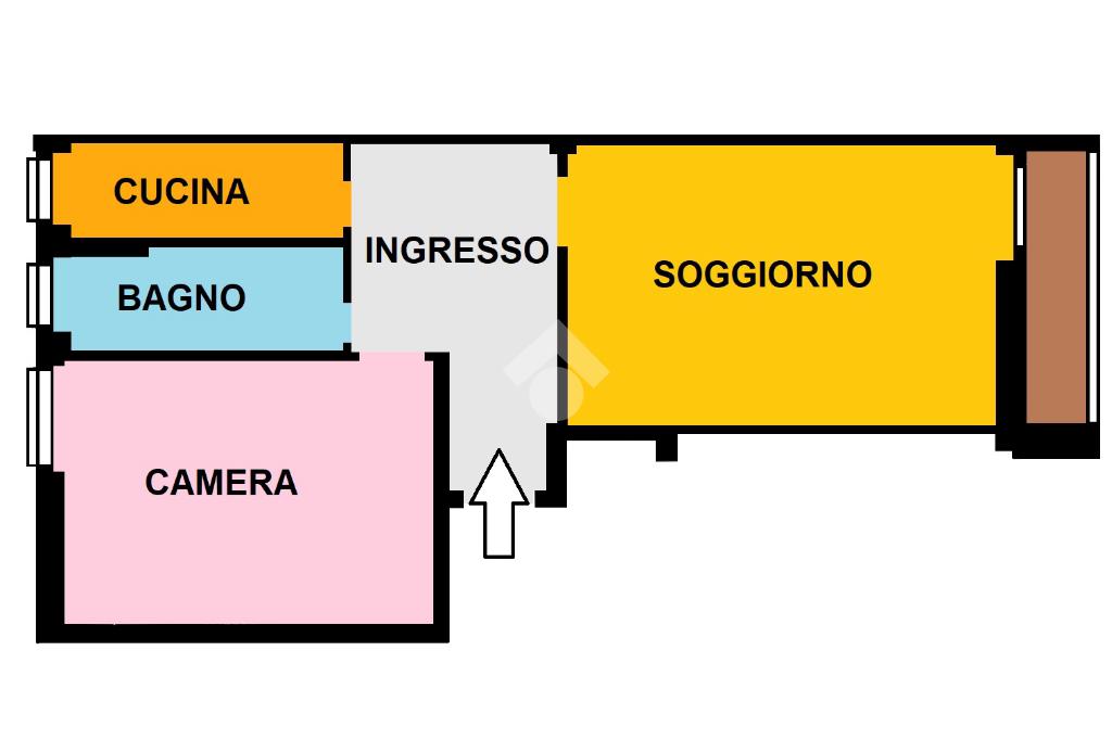 Appartamento al sesto piano composto da ingresso, soggiorno con balcone, cucinotto, bagno finestrato e camera matrimoniale. Contratto in canone concordato 3+2 anni. Canone mensile Euro 800+150 di spese condominiali. Cauzione Euro 2.400 pari a tre mensilità del canone. Asseverazione obligatoria pari a Euro 40.