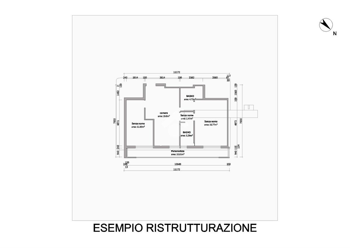 Possibilità di ristrutturarlo facendo un trilocale con cucina a vista e doppi servizi.